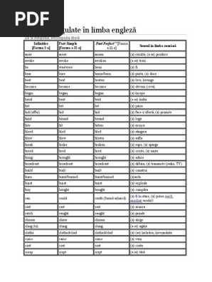Pdf Verbe Neregulate In Limba Engleză Constantin Bogdan Academia Edu