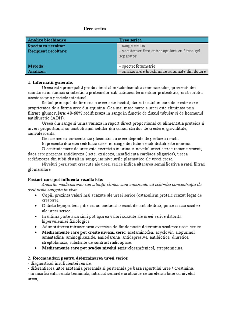 Analiza Uree Si Creatinina Recoltare