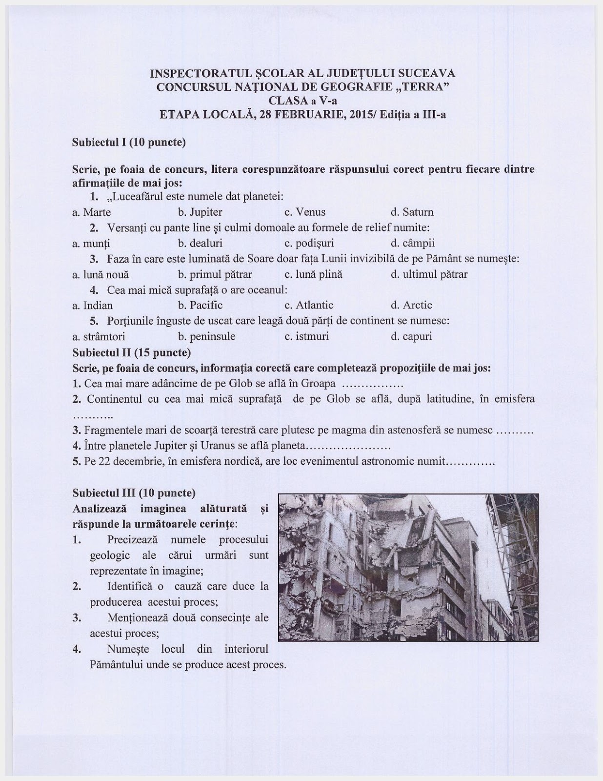 Kids4suceava Subiecte Clasa A V A Etapa Locala Jud Suceava 2013 2016 Concurs Terra