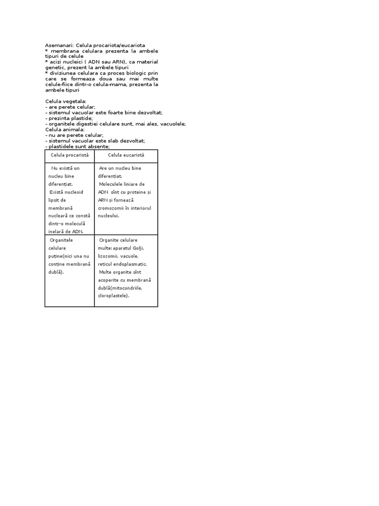 Celula Eucariota Si Procariota Asemanari
