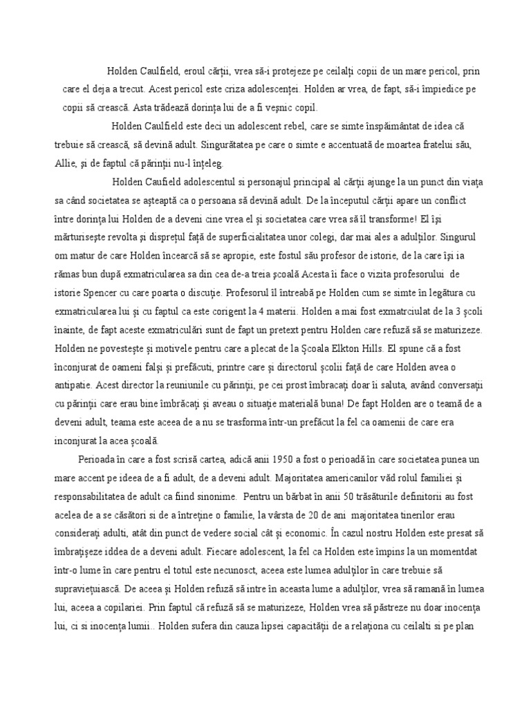 De Veghe In Lanul De Secara De Salinger Rezumatul Operei Literare