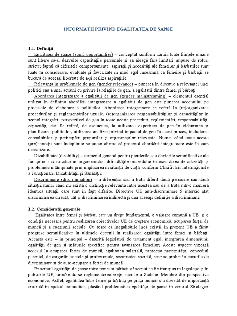 Egalitatea De Sanse Si Gen