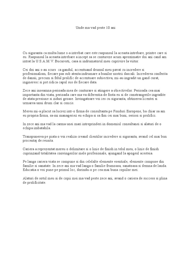 Unde Ma Vad Peste 10 Ani