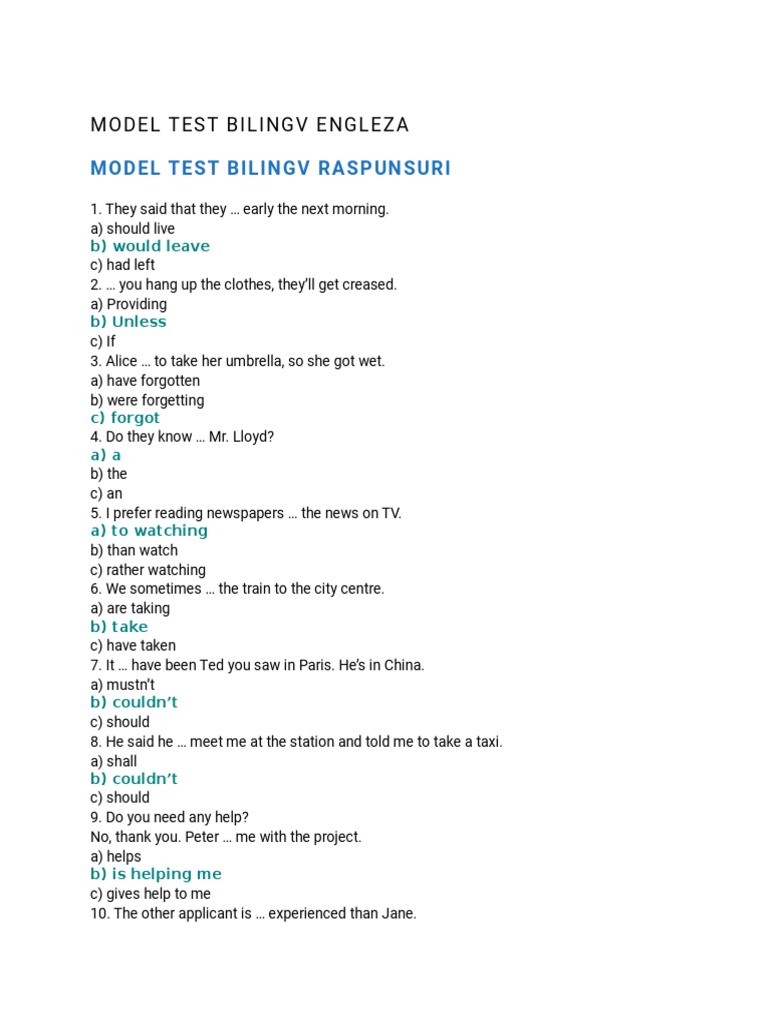 Limba Engleza Subiecte Scris Testare Bilingv 2016 Pdf Money