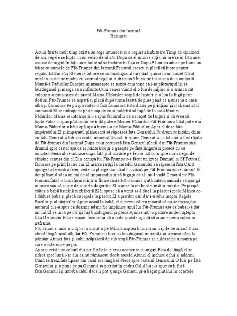 Rezumat Fat Frumos Din Lacrima 182733 Graduo