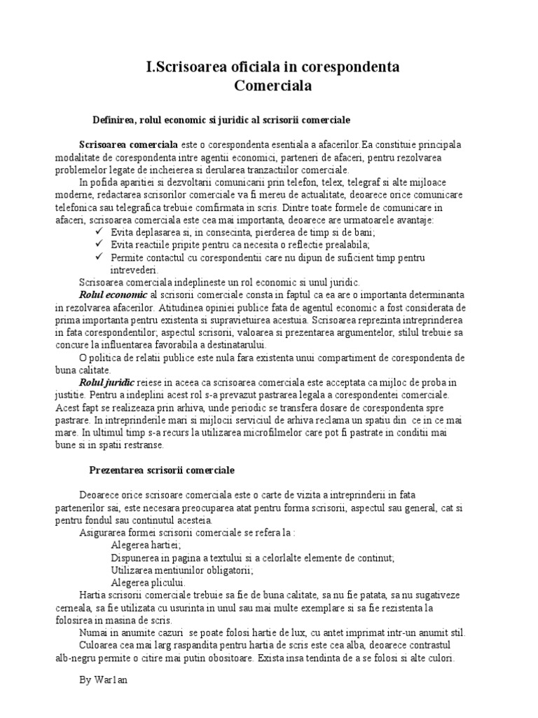 Scrisoarea Oficiala In Corespondenta Comerciala
