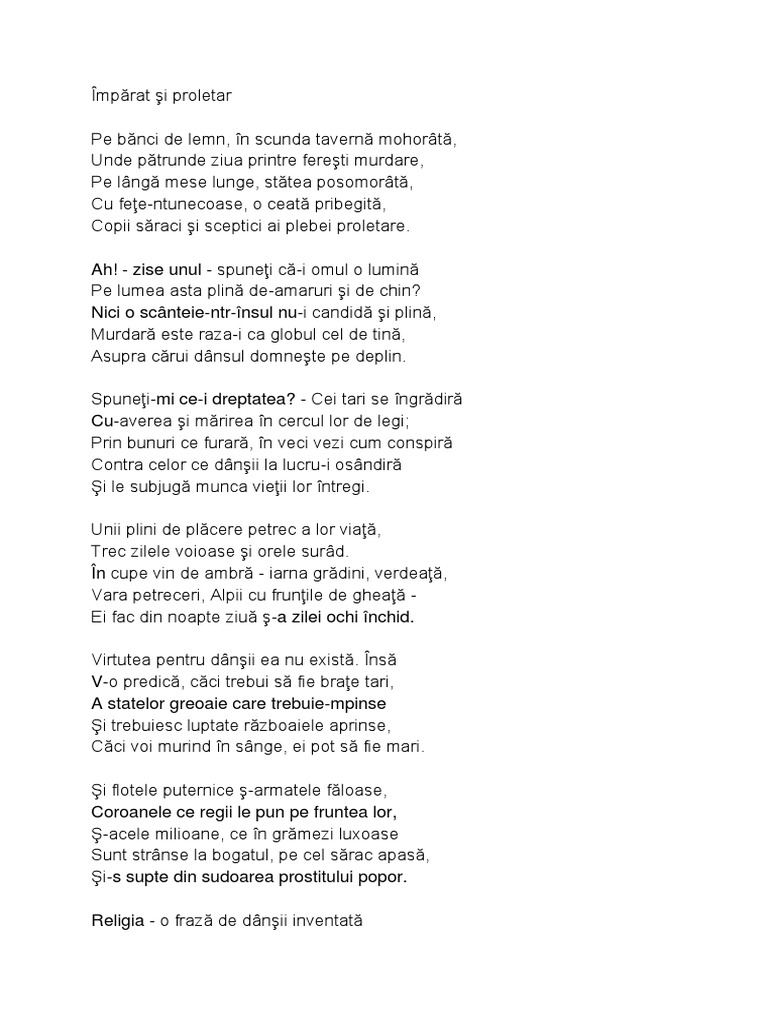 Versurile Impărat și Proletar De Mihai Eminescu