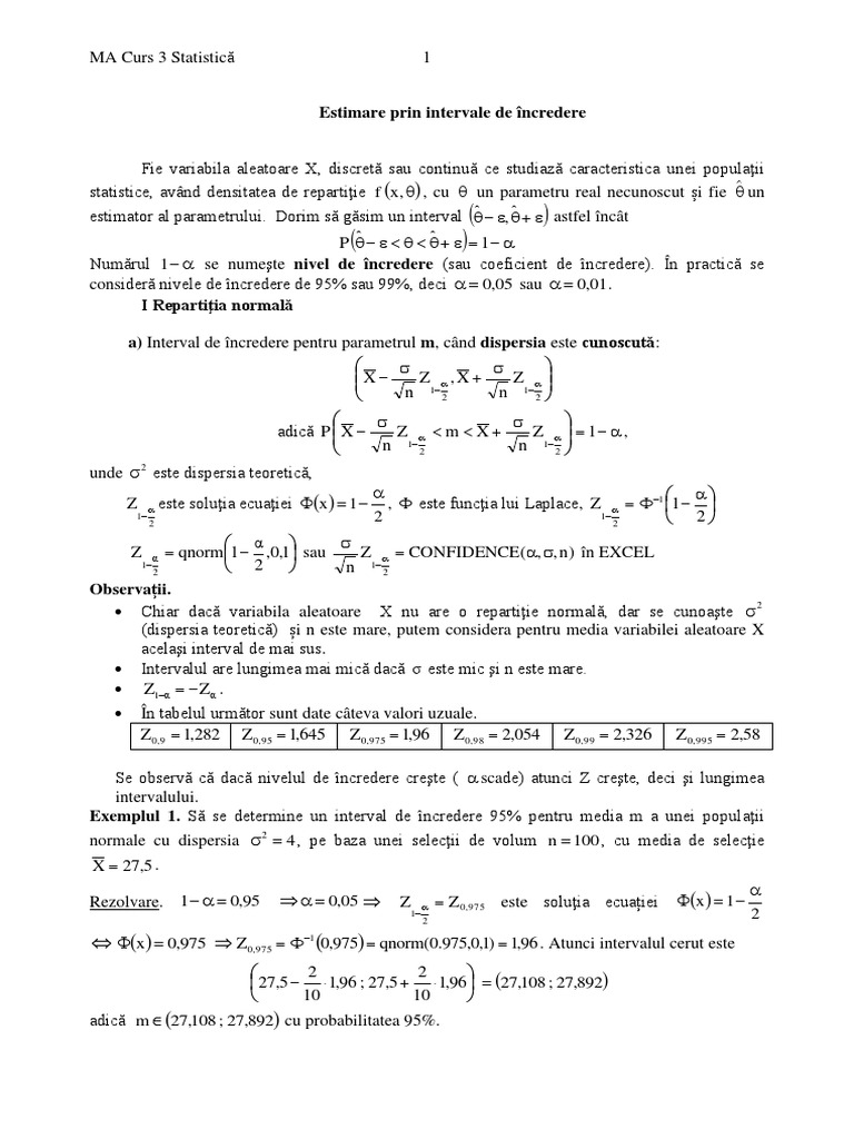 Ma Curs 3 Statistica Intervale De Incredere