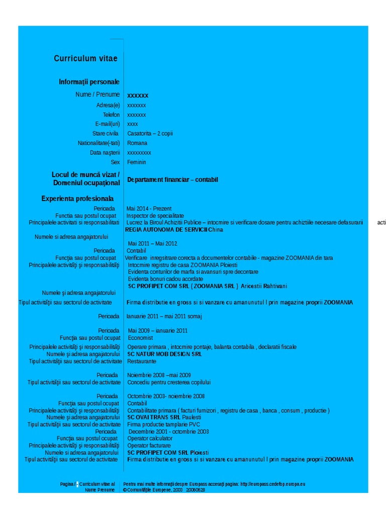 Model Cv European Romana