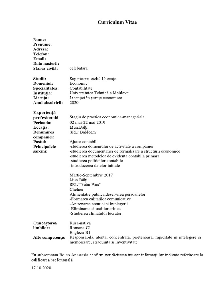 Model Cv Contabilitate Primara