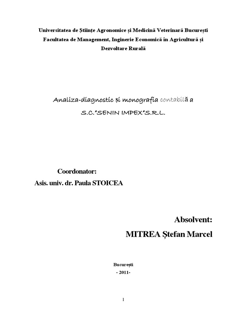 Cuprins Monografie Contabila Privind Principalele Documente Primare Utilizate In Contabilitate