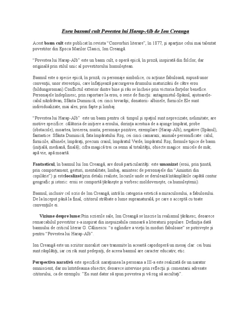 Povestea Lui Harap Alb De Ion Creangă Comentariu G B
