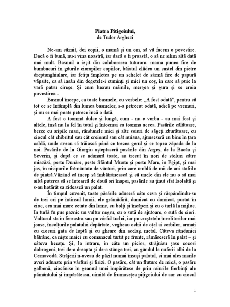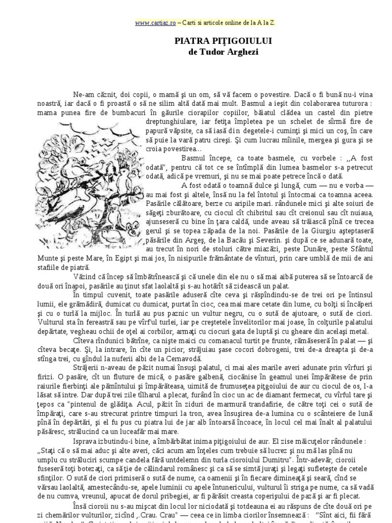 Piatra pitigoiului de tudor arghezi. Dacă o fi bună nu i vina noastră iar dacă o fi proastă o să. Like 418 dislike 18 ne am căznit doi copii o mamă şi un om să vă facem o povestire. Danabogdanel scoala gimnaziala nr 10 dimitrie sturza tecuci.