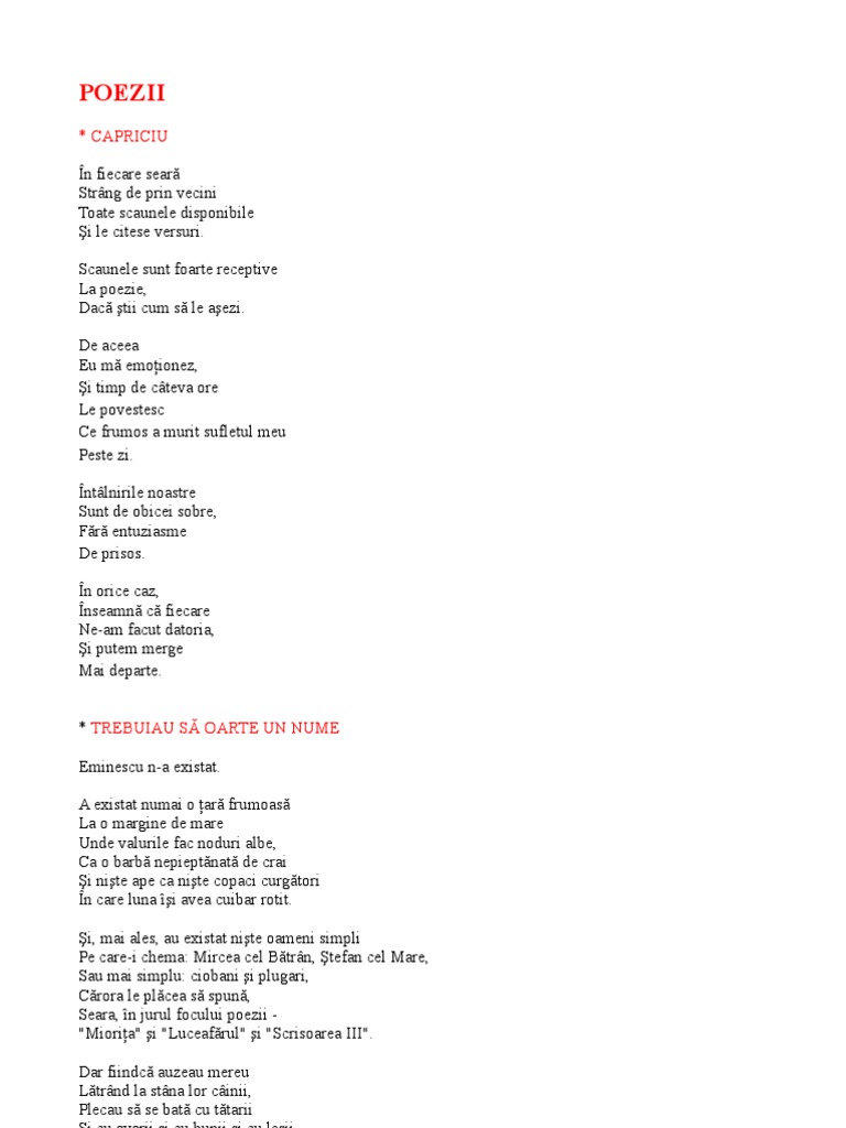 Exercitii Limbaromana Poezia Povară De Marin Sorescu