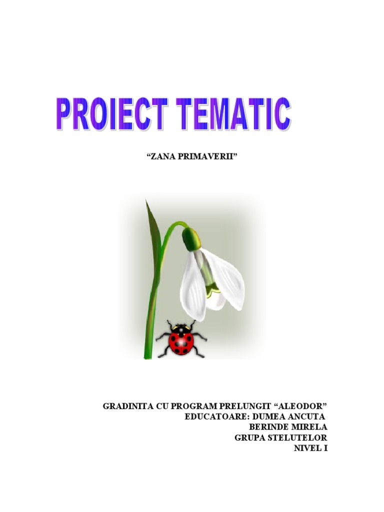 Proiect Tematic Zambetul Primăverii Pdf Document