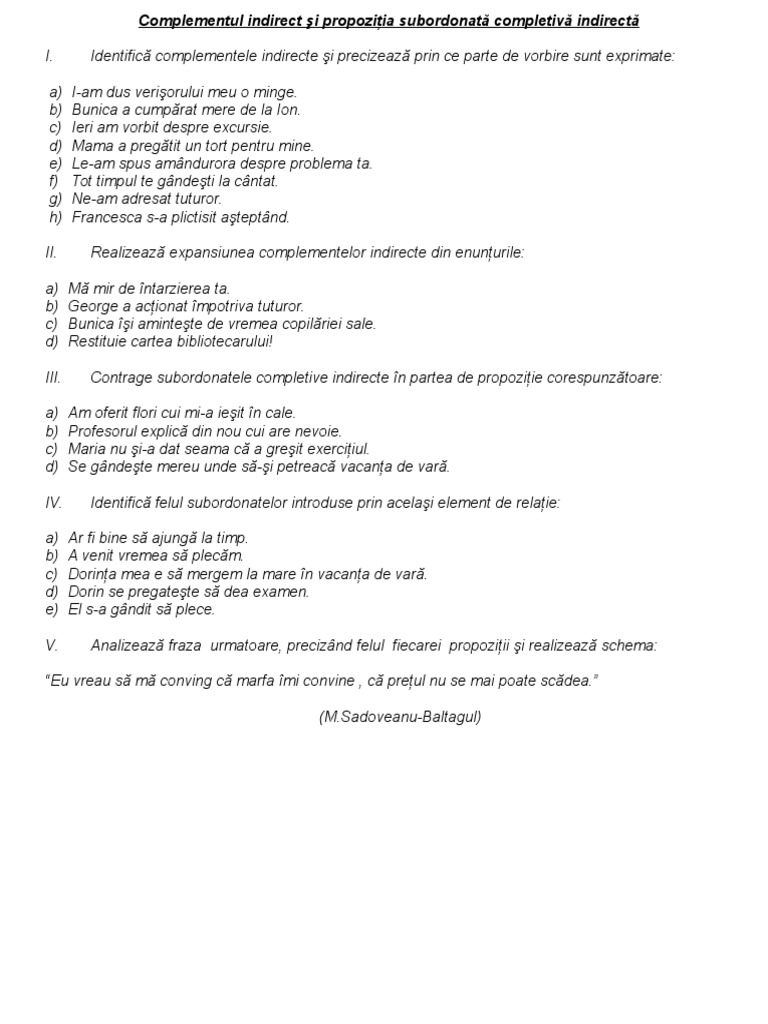 Complementul Indirect și Propoziția Completivă Indirectă Youtube