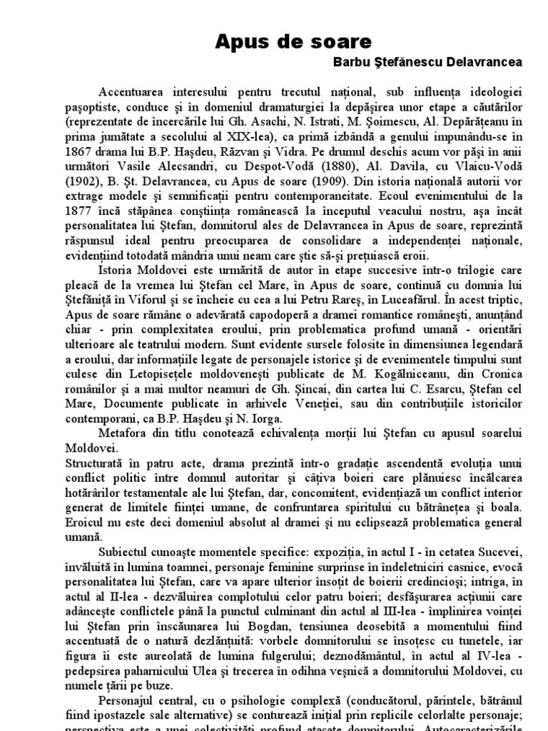 Apus De Soare Barbu Stefanescu Delavrancea Povestire Pe Acte