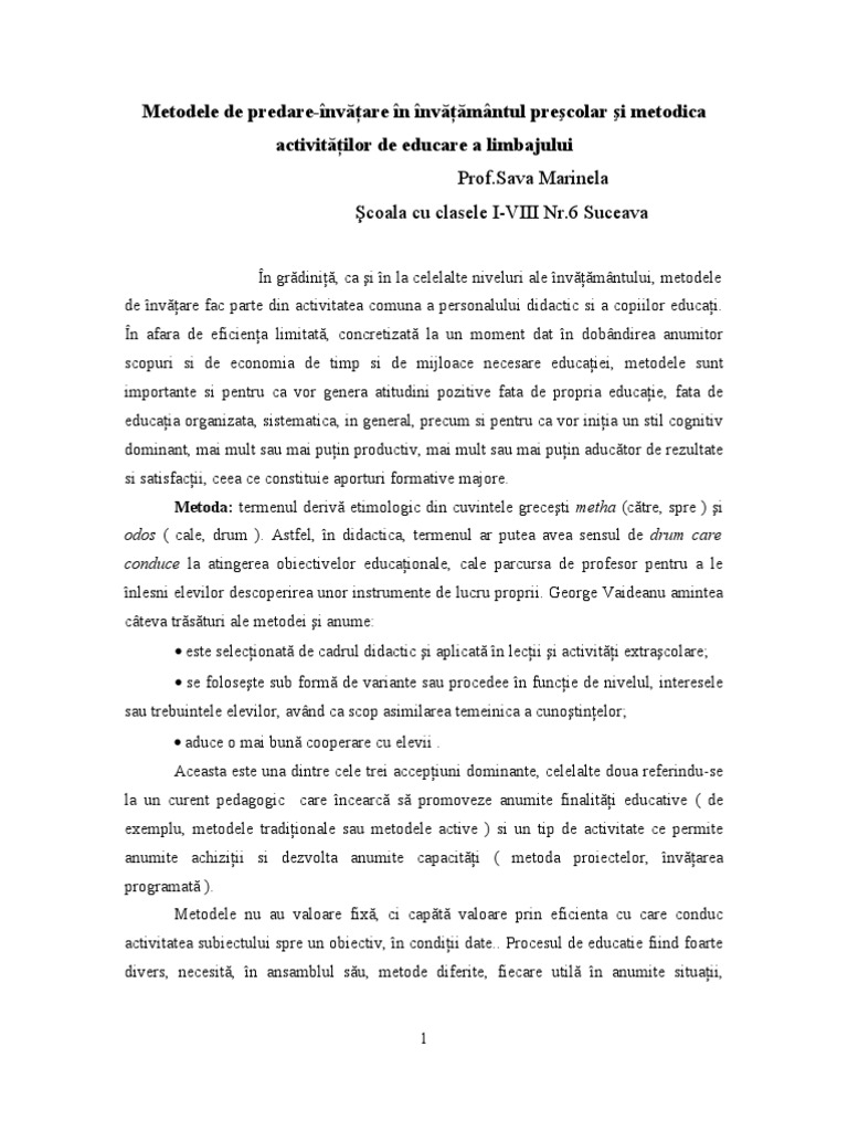 Metode De Predare Invatare In Invatamantul Prescolar Si Metodica Activit De Ed