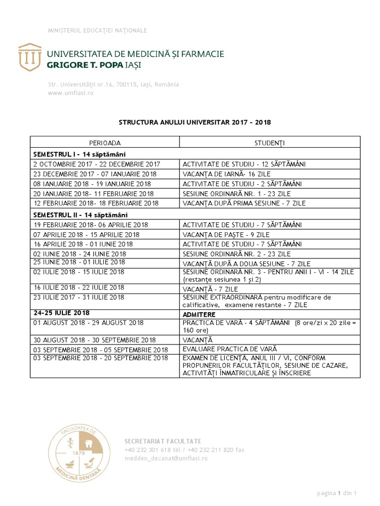 Structura An Universitar 2017 2018 Romana Pdf