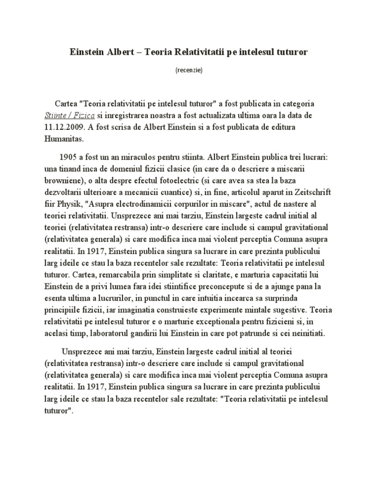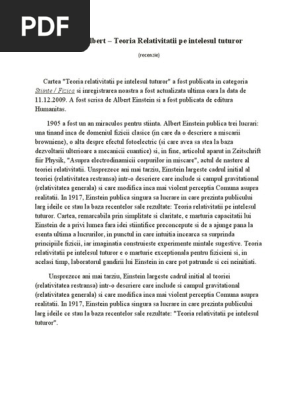 Albert Einstein Teoria Relativitatii Pe Intelesul Tuturor Pdf