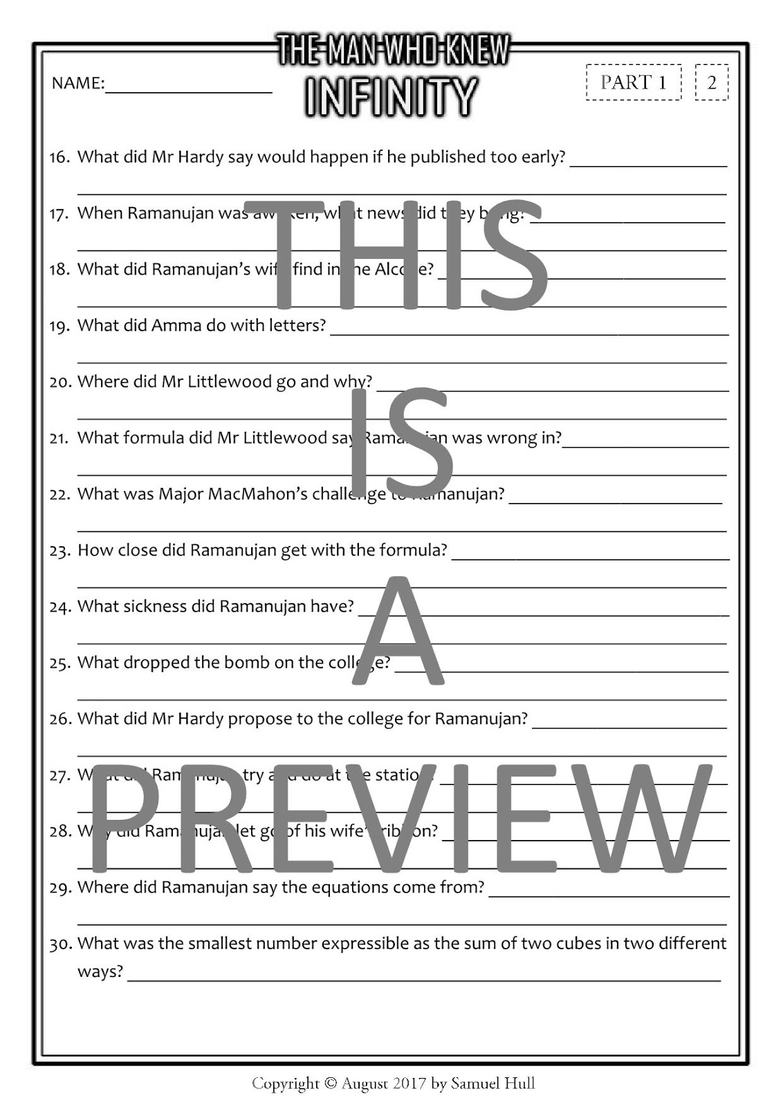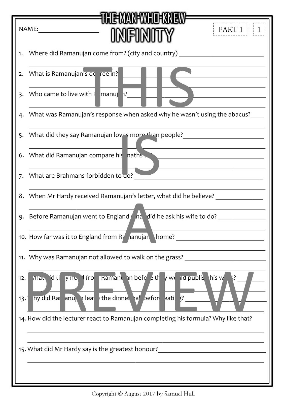 Movie Guides And Comprehension Questions The Man Who Knew Infinity 2015 Movie Comprehension Questions Activities Answer Key Included